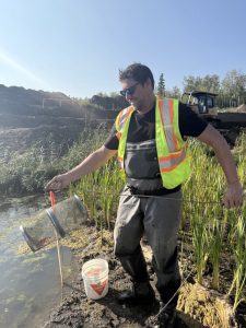A key component of the project was the fish salvage operation, which turned out to be the largest in Urban’s history. The river’s mucky substrate and cold fall temperatures made electrofishing impossible, adding a layer of complexity to the project. The operation required nearly 100% salvage due to the extensive dewatering, with minnow traps and dipnetting as the primary method. In 2024, the team salvaged around 4,000 fish, a number that seemed impressive until 2025, when a staggering 14,001 fish were salvaged over the span of two weeks!